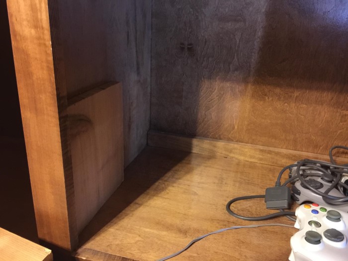 During this week’s furlough, I decided to tackle a few projects around the house that I’ve been putting off for far too long. One of those projects involved creating a pair of “spacer shelves” for our upstairs entertainment center.