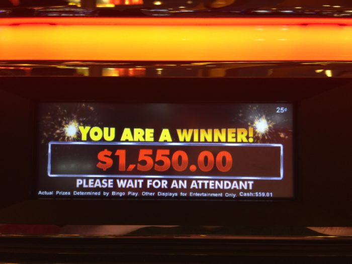 Once the paperwork settled, I had an hour to kill before my next appointment so I drove down the street to Riverwind and sat down in front of a quarter slot machine to relax. Five minutes later, this happened: