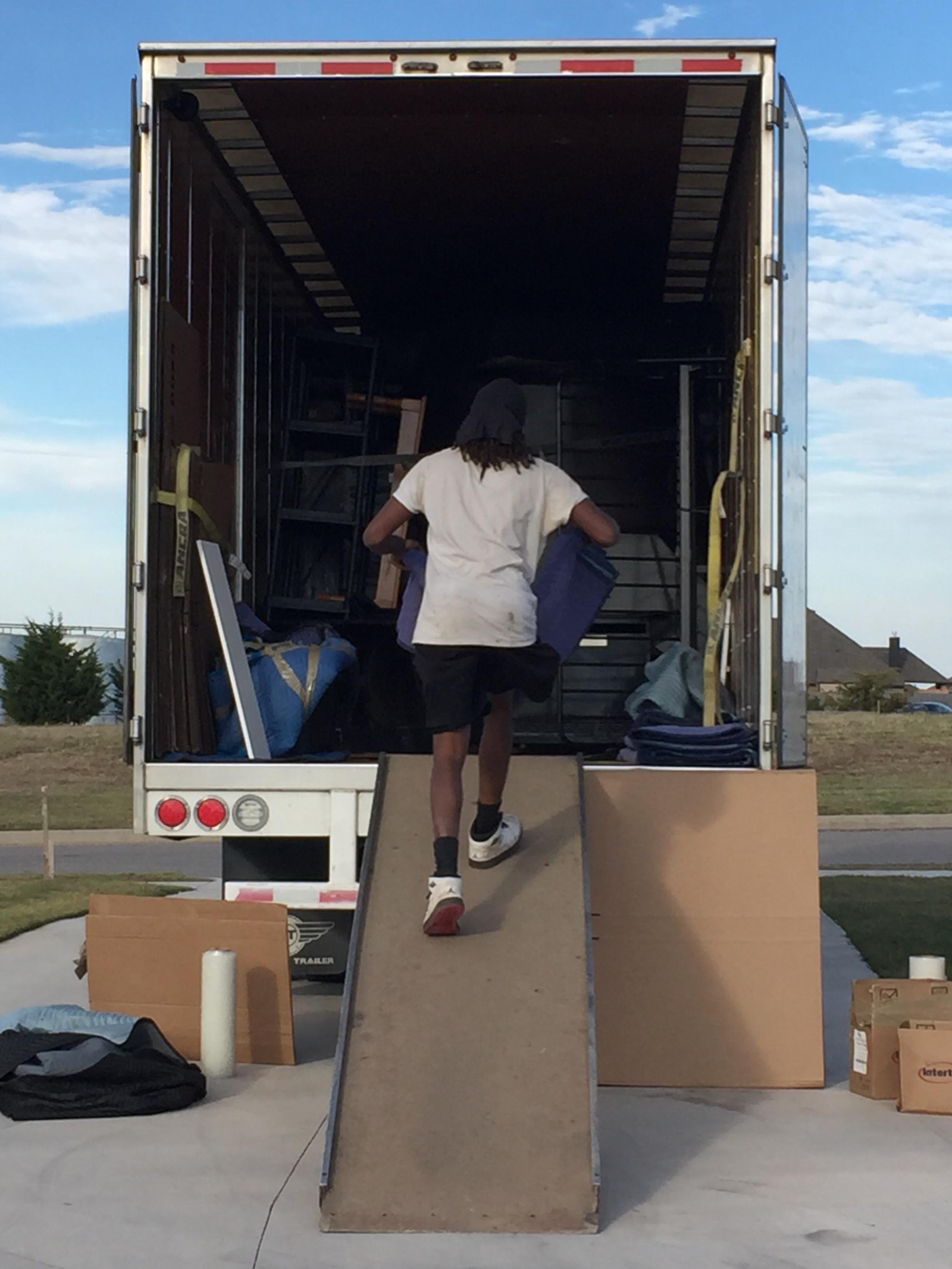 It took four guys (with amazing cardio) roughly five hours to fill both of their trucks and another three hours to unload them. There wasn’t much for me to do while the trucks were being loaded, other than stand around and worry which of my things were about to be broken. Unloading was a different story. The pace changed, and all of a sudden four guys were rolling past me with boxes stacked on top of dollies, whizzing by at a breakneck speed as we tried to direct traffic and get the majority of the boxes back into the corresponding rooms, or at least as close to their final destinations as possible.