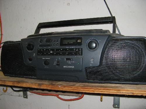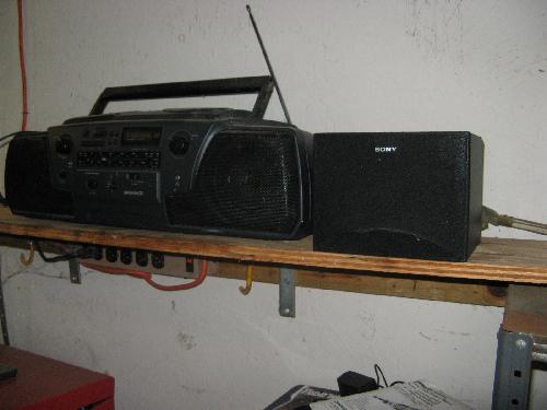 (Rob goes upstairs, finds and old amplifier, takes it to the garage and continues wiring.)