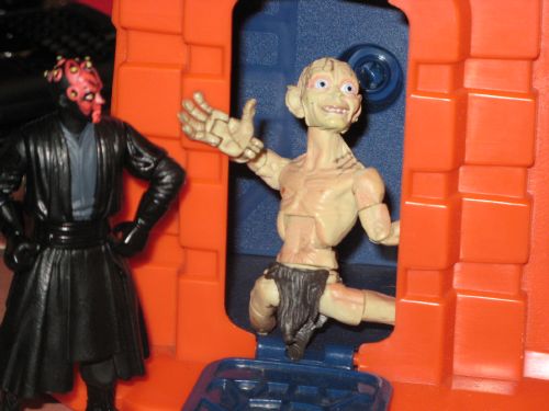 Here, Darth Maul looks on as Gollum tries to escape the trash compactor. Wait — what’s Gollum doing in there?