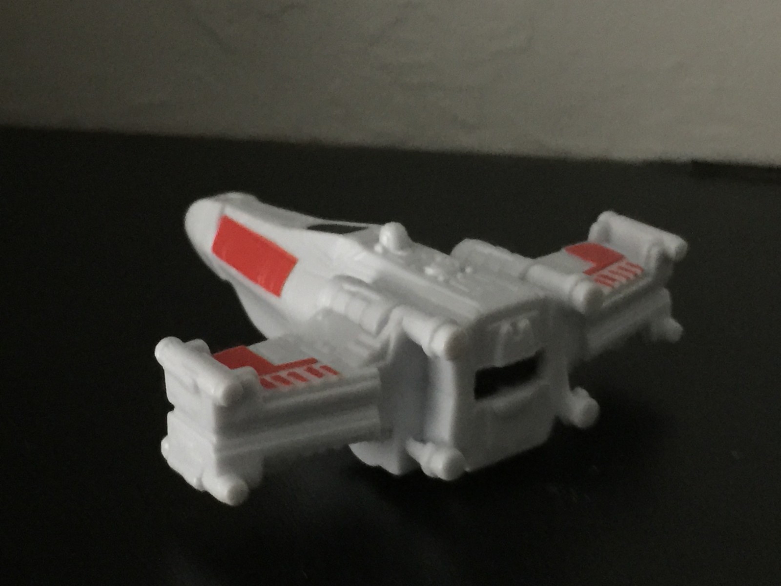 As you can see, the toys I picked up mostly/kinda resemble an X-Wing fighter. These toys did not include the ship’s iconic laser cannons that normally extended from the wings, so while it doesn’t look exactly like the ones that appeared on screen, in a somewhat ironic way, it resembles many of the Kenner toys kids owned after the cannons fell off and were lost. Without those cannons and with no moving parts, there’s really nothing to break here. I do think a tiny dab of blue paint on the R2 unit would have gone a long way.