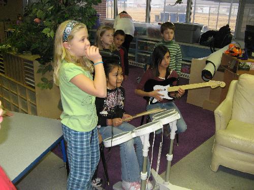 The kids, however, had a blast. I ended up organizing the kids into six “bands” of three. Each band got two songs, and on each song I made them switch up the instruments so everybody got a chance to try something different (or, more to the point, nobody got stuck singing twice). Drums were by far the most popular instrument, and I saw many styles throughout the afternoon: some kids actually played them like drums, others played them like bongos (without the sticks) and one kid (I dubbed “Animal,” from the Muppet Show) just beat the crap out of everything within reach every chance he got.