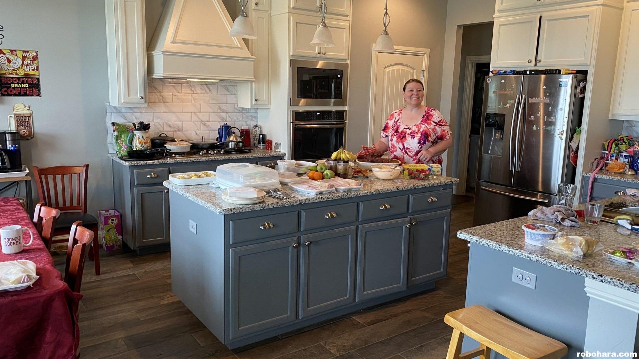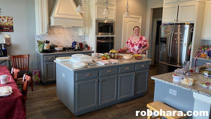 Instead, Susan baked an entire meal (ham, potato salad, deviled eggs, beans, rolls, carrots, cupcakes, and that weird, fluffy stuff she calls salad that’s made out of Cool Whip), made plates, and delivered them around town. We sent two meals-worth to my dad, two plates to Susan’s mom’s house, and some cupcakes over to to my mom’s. While at my mom’s, we sat six-feet-apart outside and talked while Mason and Morgan played basketball in the driveway.
