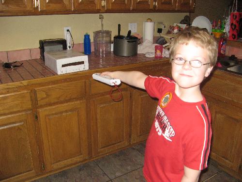 (Mason pretending to play Wii.)