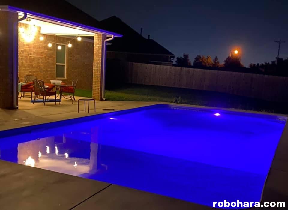 On Friday we attended “pool school,” during which the contractor demonstrated how all the equipment works. I hovered around with a spiral notebook and pen, ready to write reminding notes for all the procedures. By the time school was over I had written things like “turn on,” “vacuum weekly,” and in regards to the filter equipment, “don’t touch!” (That last part, I underlined.) It’s a salt water pool and the filter is on a timer, so other than occasionally cleaning out filters and adding salt as needed, there’s not a whole lot of maintenance. I have to say I was surprised that adding salt is literally done by opening a large bag of salt and dumping it into the pool. For some reason I was expecting a more complicated procedure. Other than scooping out random bugs, the only thing we have to do every day is turn a dial to change the colors of the pool’s underwater LED lights.