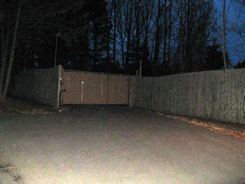 Bam lives pretty far out in the woods. After cruising through West Chester you’ll head out of town several miles. For several minutes all I saw were trees and deer. Eventually, after passing several large houses, I found a large property surrounded by an eight-foot tall privacy fence. The fence is covered with security cameras, motion-sensitive lights, and signs like these: