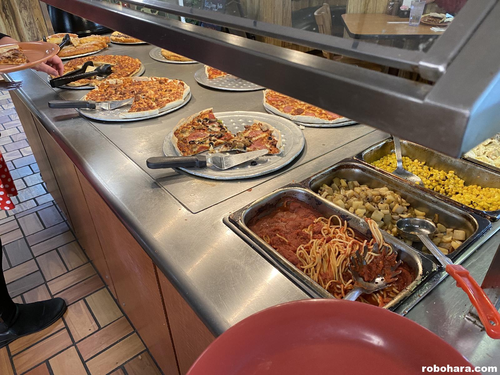 The pizza at Ken’s was pretty unique. All the pizza on the buffet was thin crust with a zingy sauce, and most of them (save for the rare combo pizza) only had a single topping. Next to the pizzas were metal bins of breadsticks, spaghetti, and maybe another pasta or something. It wasn’t authentic Italian pizza and it wasn’t intended to be, but it was cheap. I think the buffet cost $2.99, and adding a salad bar might have cost extra (I don’t remember if a drink was included in the lunch buffet price or not). My favorite thing to do at Ken’s was to get a slice of pizza, push some spaghetti on top of it, and eat them both that way. Yum!