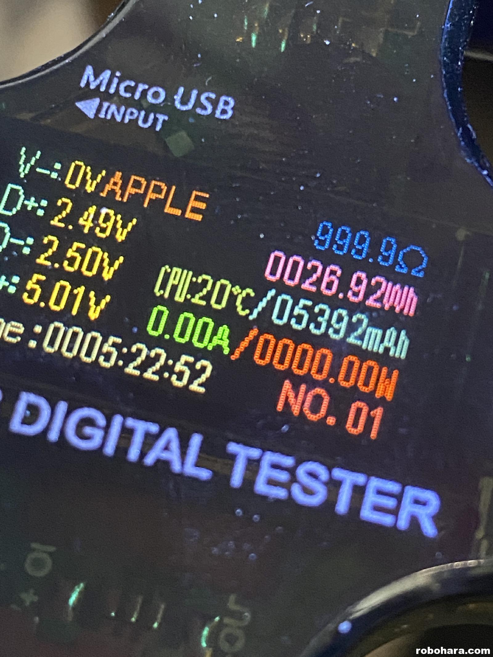 Next, it was time to test my new 36,800 USB power pack. Multiplying that number by 0.6 gave me 23,160mAh, which is what I was expecting to see.