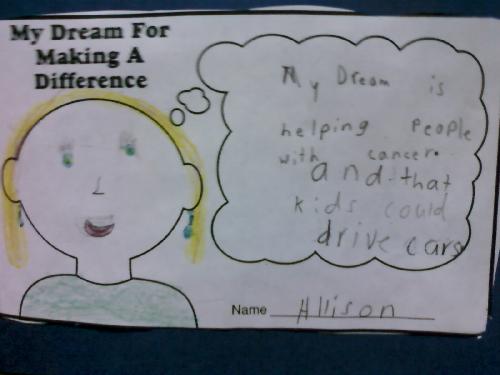 “My Dream For Making a Difference … My Dream is helping people with cancer. And that kids could drive cars.”