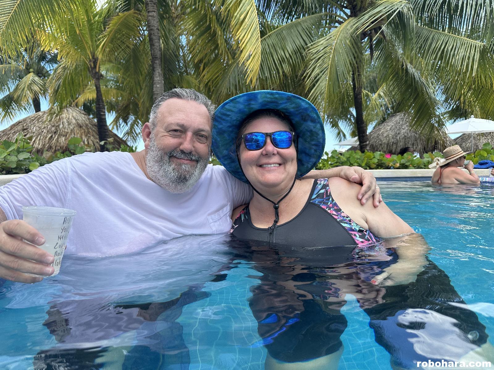 A few seconds later, Jeff was behind me in the pool giving me the Heimlich maneuver. After a couple of attempts, the piece of ice shot out of my mouth. It took me a full minute of gasping before I felt like everything was okay. To celebrate not dying, we ordered another round of drinks. A minute or two later, Susan returned and learned of my near death experience. When she asked if I was okay I fell off my stool into the water just like a stuntman. Party on!