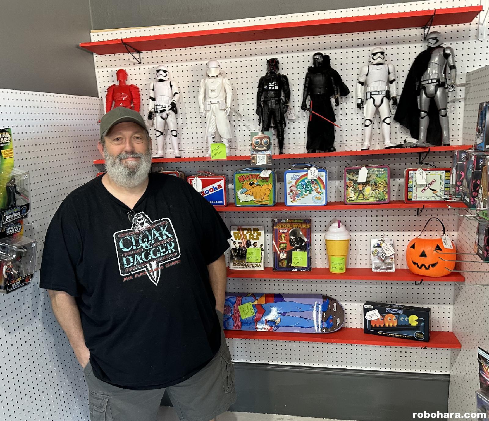 We named the shop “Retro Rob’s,” which isn’t incredibly original but kind of sums the space up. This is what we were able to put together in a single afternoon. I have tons of things ready to price, including some video games (and spare systems) and other goodies. If you want to check it out for yourself, Gambit’s Toy Box is located on Main Street in Bethany, just a few shops down from the Stray Dog Cafe. Don’t get distracted by the vintage couch and Nintendo to the left — look for the red shelves on the right!