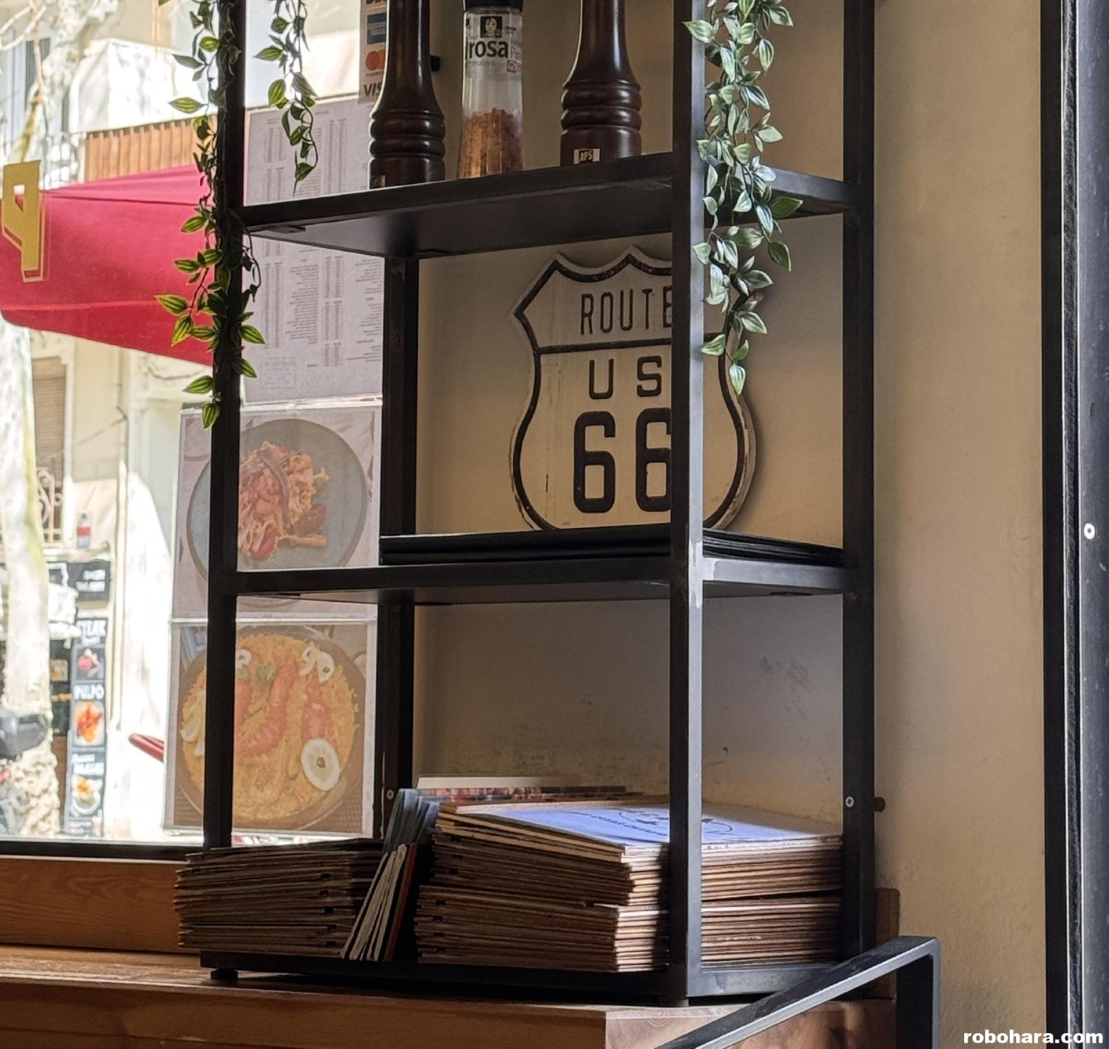 One thing that really cracked us up was that at the front of the restaurant they had on display a Route 66 in a glass case. Route 66 is known as “Main Street” in my town.
