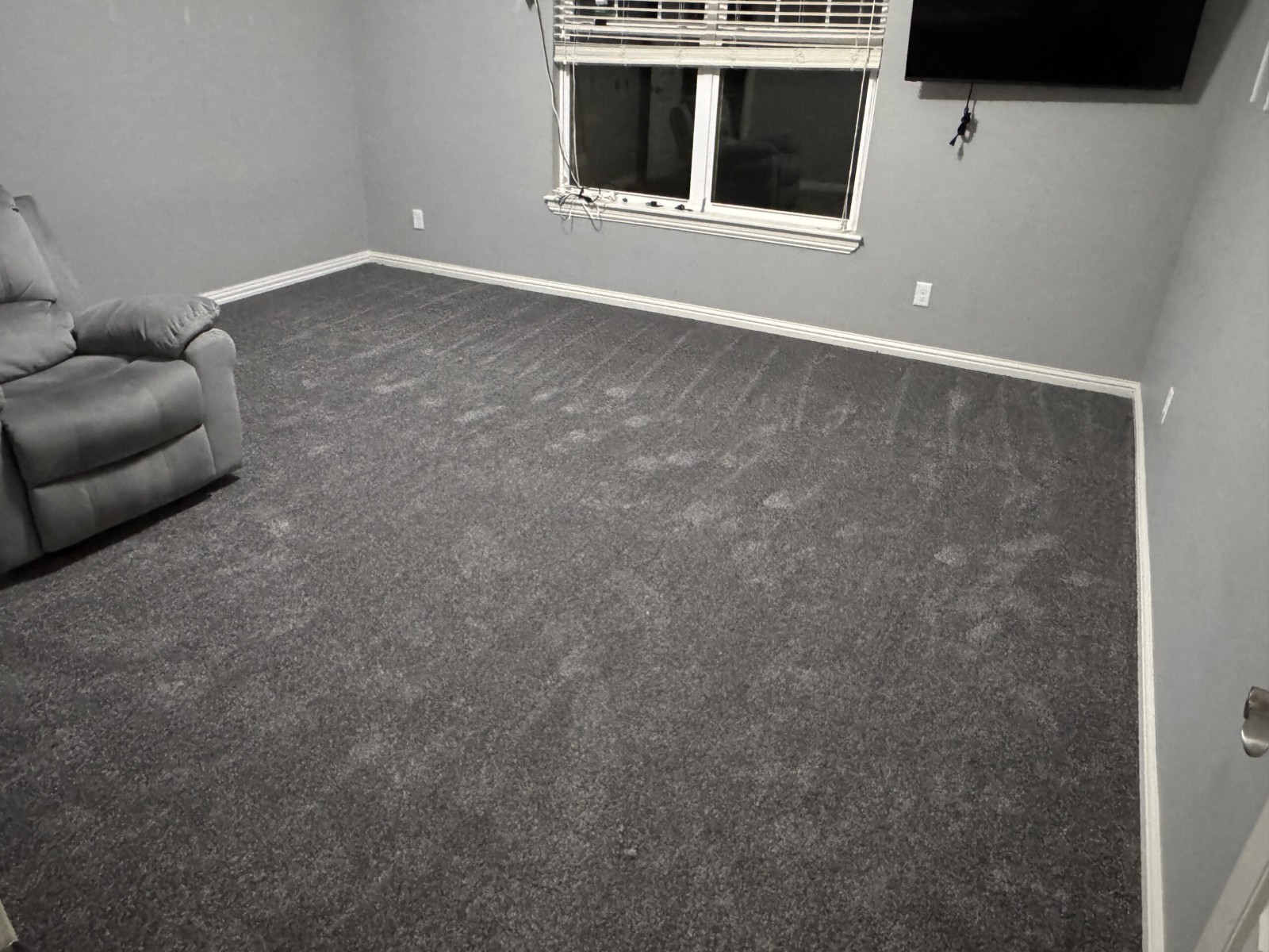 In a perfect world, the contractors doing the drywall and painting would have been finished before the carpet installers arrived. Instead, they only worked two hours last week and didn’t start installing baseboards until Saturday. Everything we own that was on a wall or against a baseboard has been moved into all the remaining free space in our house. Since we were told the baseboards, drywall repair, and painting would be finished before the carpet installers arrived, we were planning on putting some of our stuff back wher it goes which would free up space for the stuff we have on carpet. But again, since they inexplicably didn’t do any work last week, we have essentially had to put twenty pounds of “shaving cream” in a space large enough to hold ten.