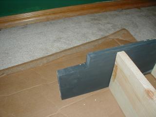 After the shelves were assembled, I painted them. This would have gone a lot easier if I had simply painted all the wood first and then assembled the shelves, instead of the other way around. You can do either.