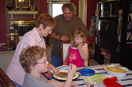 With the new grill in place and a tank full of propane we fired it up. Everybody liked the burgers, so I’d say the new grill was a success! Dad said he would rather have cookies instead of cake this year, so Susan picked up one of those giant cookies along with some smaller sugar and peanut butter cookies (dad’s favorite).