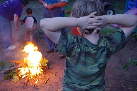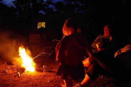 Soon it was dark, and the fire was bright. The kids were fascinated by the campfire. Most of the night was spent with the kids getting too close to the fire, and the adults worrying about the kids getting burned. We forgot to bring marshmallows to roast, and when the nearest store is half an hour away (round trip), sometimes you do without. The kids didn’t mind too much.