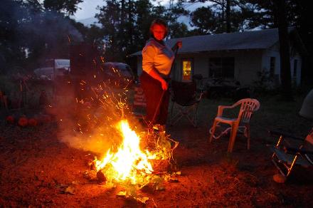 Whenever the fire would get low, Susan would show off her Girl Scout Skills by stoking the fire. Woomph!