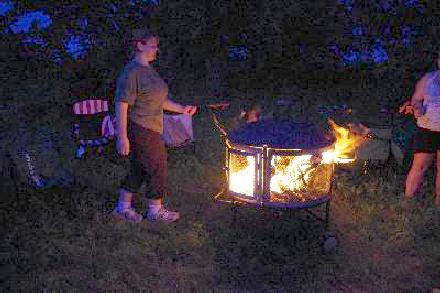 Once we had our camper set up and Susan’s sister had her tent set up, Susan’s mom brought down her portable fire pit, which we used to start a fire and cook hot dogs on. Ah, there’s nothing like roughing it.