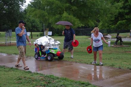 So we moved to the pavilion and we got judged and we won for most creative float in the group category, but we should not have — it’s just that all the other more creative floats had already been soaked and left. If anything, we should have won “most wet” or perhaps “most resilient”. Regardless, the kids were glad to win and I got to keep my “better luck next year” speech tucked in my back pocket for at least one more year.