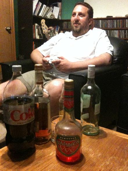Jeff came over last night and while digging through the liquor cabinet, back in the back I found that same bottle of Mad Melon we started on 15 years ago. We couldn’t decide if watermelon schnapps could go bad or not, so we decided to go ahead and drink it.