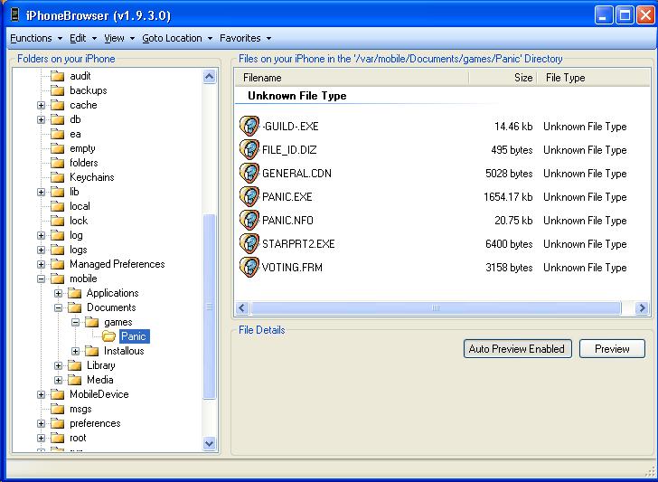 Using iPhoneBrowser, I created a directory named “Panic” under /var/mobile/documents/ on the iPad, and copied the files there.