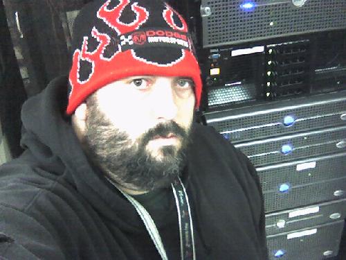 After picking up some tacos after the game, I made it back to work just before midnight. The server took a couple of hours to load. I took this picture of the server and myself just before heading back home at 2am.