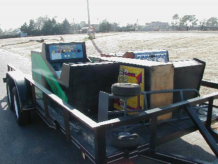 Last night Dad and I were trying to remember when exactly he bought his trailer. We’re thinking it was in late 2001, but we’re not 100% sure. Dad bought the trailer to haul a car back from up Indiana, but the first thing I used the trailer for was (surprise) moving some arcade games. In July of 2002 I bought three machines (Bucky O’Hare, Shinobi, and a dart machine) from a local auction. That’s the first time I remember using the trailer, and the oldest pictures I can find of it.