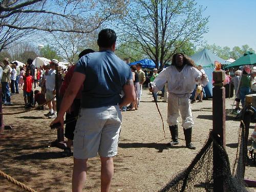 I guess we parked on the food vending side, because when we walked in all I saw were people selling “Ye Olde Indian Tacosâ€? and “The Kings Corndogsâ€?. (I just made those names up.) Other than one or two booths of people selling knives, we didn’t see anything medieval-related and I was afraid the day was going to be a bust.