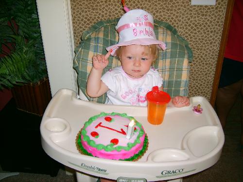 Saturday was Morgan’s first birthday party. The whole family came over and everyone had a good time. Morgan ate her first cake like a one-year-old is supposed to at her first birthday party. To make sure everybody could make the party, we ended up having it at 1pm — right in the middle of Morgan’s normal naptime. In many of the pictures, her eyelids are barely open.