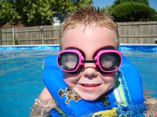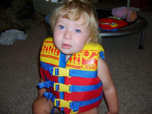 Saturday, Mason, Morgan, Susan and I got up and went swimming! It did not take long in 100+ degree weather for the pool to heat up. It was Morgan’s first experience wearing a life jacket. That went okay, except it’s a bit too big for her and if you let her go it flips her over on to her face. Mason, on the other hand, is a regular fish — he swam and he swam all over the dam, er, pool. Our pool’s ladder is still in a state of flux. I picked up another one from the pool store yesterday and will install it when it ain’t so hot. Like, maybe November. ;)