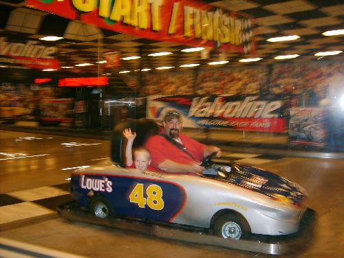 The Fast and The Furious, it ain’t. As far as the slow cars are concerned, you pretty much keep the pedal to the floor at all times and follow one another around the track in single-file fashion seven times. Although it wasn’t that exciting for me, Mason really enjoyed it. After the race, we spent another 15-20 minutes walking around and playing a few games (Outrun 2 was particularly fun) before calling it a day.
