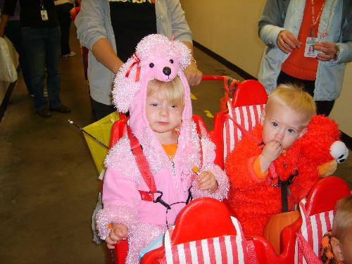 Today was “Haunt the Halls” — different from “Haunt the Zoo” only in the aspect that it takes place in the halls at work instead of the zoo. Other than location it’s pretty much the same schtick, except for the fact that both Mason and Morgan got 10x the amount of candy today than they did at the zoo (where we paid $6 per kid). Someone remind me about that next year.