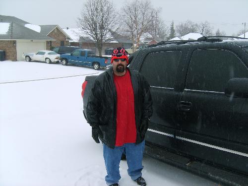 After spending all of last week in Baltimore, Susan discovered that she was to return to Oklahoma at the same time a winter storm was set to arrive. About a dozen FAA Oklahoma attendees at the conference requested permission to skip the final four hours of the conference on Friday and fly home Thursday night. Permission denied. As a result, the lot of them have spent the past few days stranded, holed up in airports and hotels across the country. Susan was one of the lucky ones; she got stranded in Kansas City, MO (350 miles north of here). After spending several hours Friday waiting around at the airport, Friday night she rented a hotel room and a four-wheel drive Chrysler Aspen (an upscale version of the Dodge Durango), and drove home Saturday. Like I said, Susan was lucky. The second wave of sleet hit Saturday afternoon; there’s no way she would have made it in after that, at least not in any reasonable amount of time. Our friends Emily and Clint are still stuck in Chicago. They spent Friday, Saturday and Sunday nights in hotel rooms due to cancelled flights. They’re being promised flights home tomorrow, but who knows for sure. Some of the others are still suck in Baltimore, and at least one was still in Dallas the last time we heard.