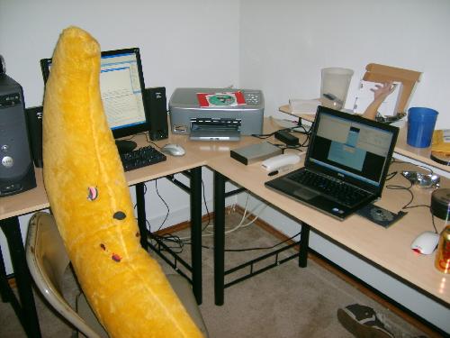 Mr. Moonpie was, in reality, a four-foot tall stuffed banana. Susan and I bought him for a dollar at a garage sale back in 1993. Running a BBS was supposed to be fun, but there are always a few people out there who insist on acting like jerks and being rude. I hated dealing with these people directly, so instead I created an account named Mr. Moonpie and did administrative my dirty work through him. If people took offense or got mad at the way I handled things, they would get mad at Mr. Moonpie instead of me. For a long time only a handful of my close friends knew that Mr. Moonpie wasn’t a real person.