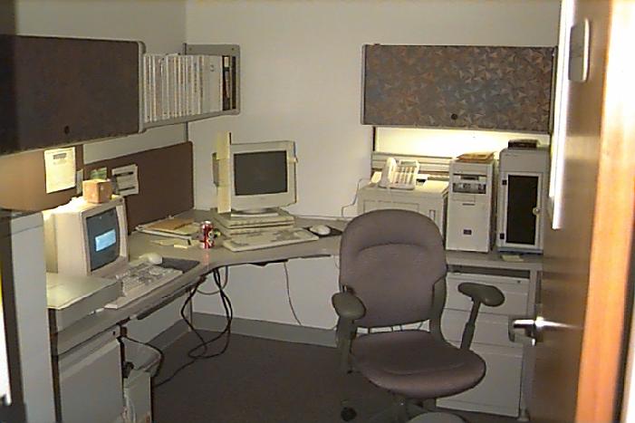 I’ve had the same job for 20 years, and other than the first 3 months and the last 3 months I’ve always had an office. My office for the first 6 years was the best. It was a consultants suite, filled with cubicles for four people and an enormous window over the tank farm (huge vats of chemicals – they used to do pharmaceutical manufacturing at my site). At first, I shared the office with others, but after a few months they all left when their assignments were up. I frantically started filling the office with crap and servers, and after about 2 months or so it was full of so much junk they couldn’t put anyone else in there. After a year, I pulled down most of the cubicle walls and just had an enormous office. The next office wasn’t nearly as nice – maybe 5 times smaller and a window to the hallway instead of the outdoors. They recently announced they were closing the site and laying off all the workers, and those of us that stayed on a little longer were moved to cubes for the last couple of months before they finished shutting the site down.