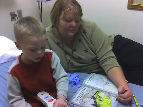 After the shock wore off, Mason calmed down and had a good time playing in his room. We were at the hospital over 3 hours. Most of that time was spent waiting in this room.