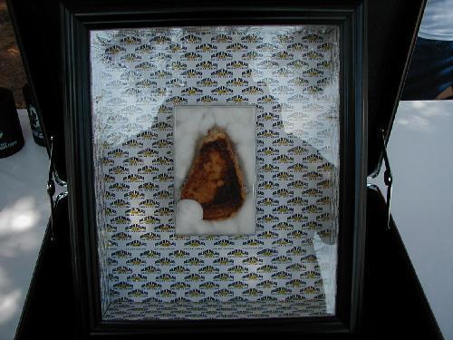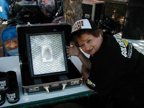 There’s Diana, standing next to the sandwich which has been relocated into a highly protective briefcase. Diana now works for GoldenPalace.com, touring the nation and making public appearances. But why on earth would Diana Duyser and her Blessed Virgin Mary Grilled Cheese Sandwich be at the Oklahoma State Fair?