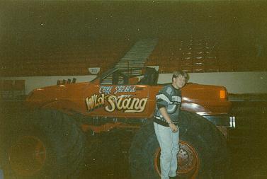 The guard looked at the two of us, yawned, and waved us through. As we rounded the corner into the show we entered the first bathroom we found. I took off the shirt and tie (I had a t-shirt on underneath), stuffed them into the briefcase, and left it there in the bathroom. Today that would probably cause a security incident but back then I’m guessing it just ended up in the trash. The two of us spent the rest of the evening with the place to ourselves, walking around and taking pictures. That’s how we were able to get a picture of Andy standing on the wheel of a monster truck-sized Mustang with nobody else around.
