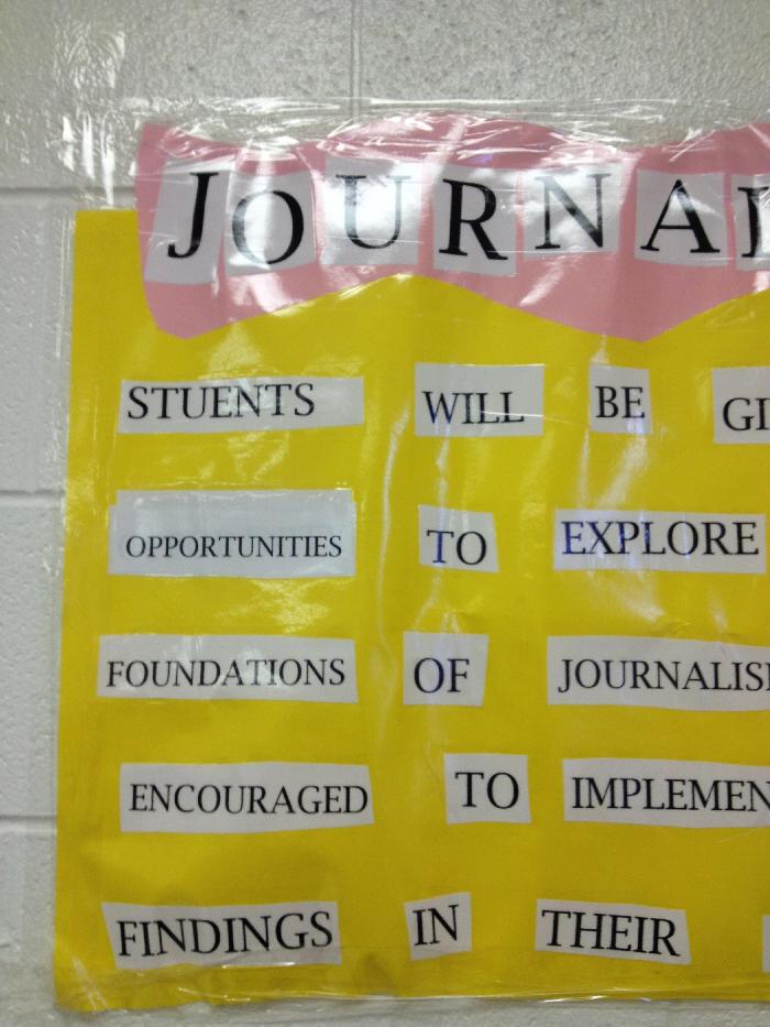 While visiting my son’s school I saw this poster hanging in the journalism room. The first word of the poster says “stuents” instead of “students”. That is a bad start for budding journalists.