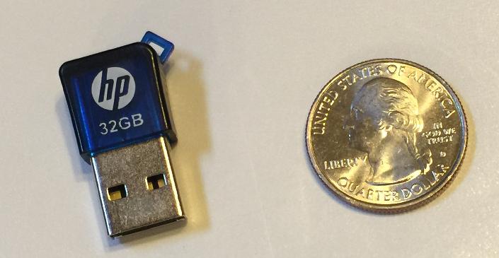 Here’s one of the thumb drives, next to a quarter.