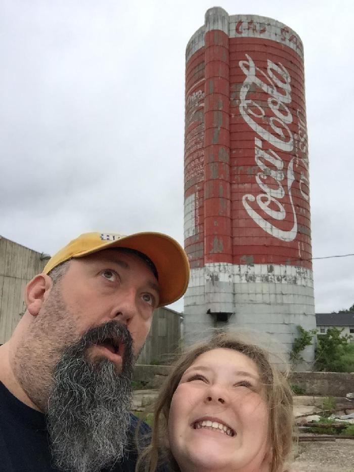 Susan recently installed Roadtrippers on her phone. You tell the app where you’re headed, it figures out where you are, and based on that it shows you points of interests along your route. On our test run of the app, Roadtrippers informed us that we were only 75 miles away from the world’s largest can of Coke. An hour later in Emporia, Kansas, we exited the turnpike, followed a big road that led to a smaller road that led to a dirt road, and found ourselves staring at an old silo painted to look like a can of Classic Coke.