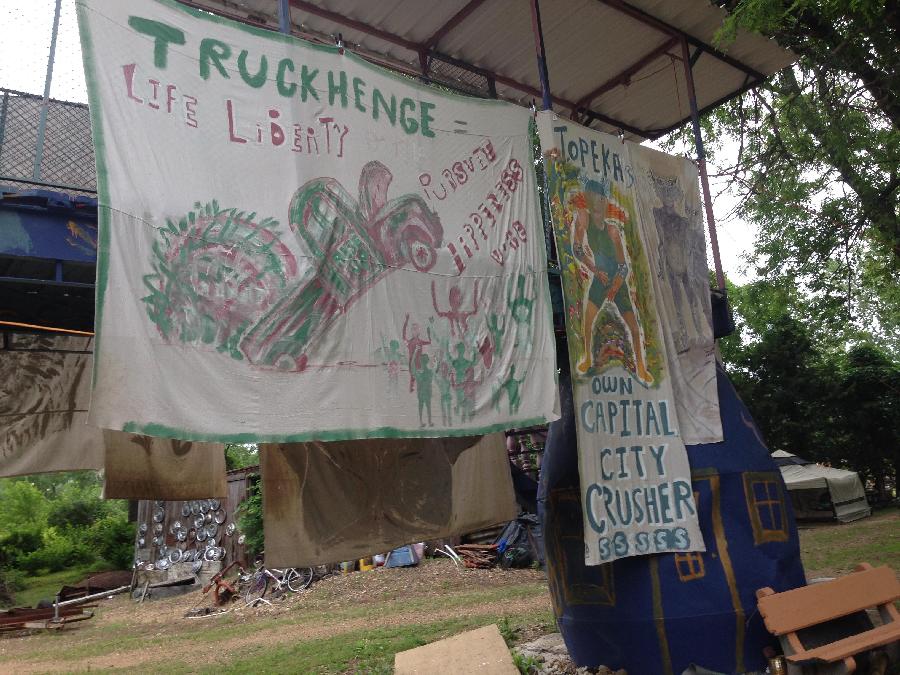 A bit further down the path, past Beer Bottle City and a giant concrete tub full of murky water, frogs and occasionally snakes, is Truckhenge.