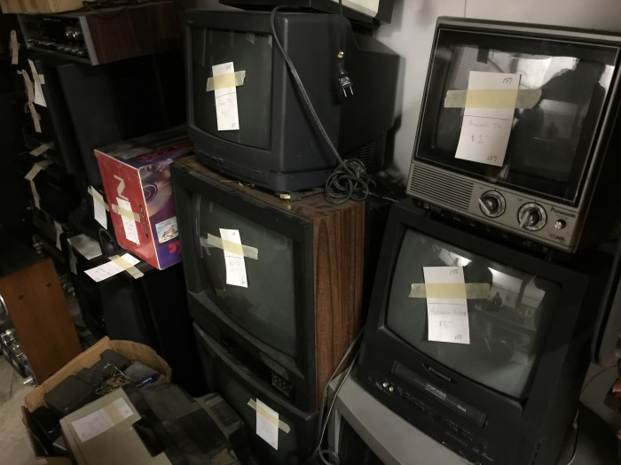 After finding the computer equipment I decided to walk around for a few minutes and mull things over. The other corner of the workshop was stacked floor to ceiling with older electronics: large, vintage stereo speakers, tube televisions, a few reel to reel stereo units, a couple of TV/VCR combos, and other outdated things.
