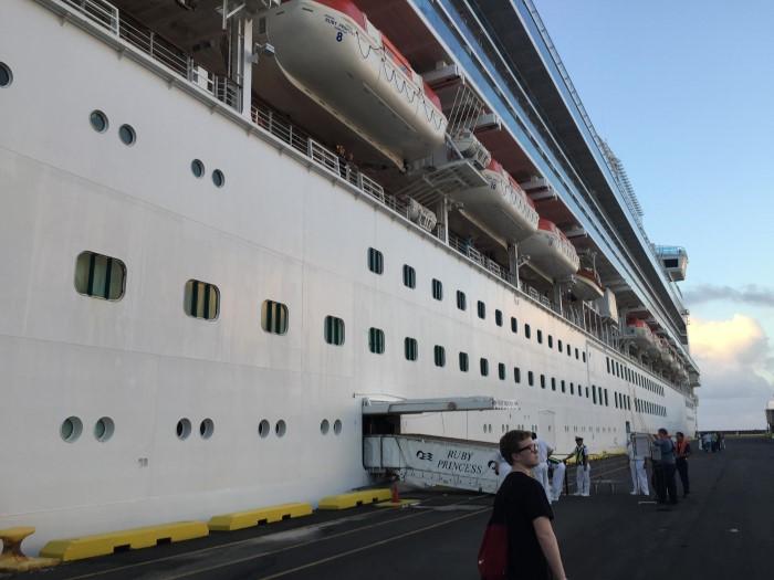 On Friday, December 18th, we got up early to go on the Paramount Studio’s back lot tour. Last year while in California we went on the Warner Bros. tour and we enjoyed it so much that we decided to do another one. After the tour we drove to the port and began the embarking process. The process was a mess. A group of tourists from Canada didn’t bring the proper paperwork and couldn’t leave the ship, which was preventing us from boarding. As we would eventually learn, the entire boarding and unboarding process is a bit of a scheduling nightmare and one minor thing (like this) can screw everything up. Instead of waiting in our reserved area and boarding the ship smoothly, we spent a couple of hours standing around (and later sitting on the hard ground) waiting for things to move. Like many things, these waits were frustrating at the time but seem inconsequential in retrospect.