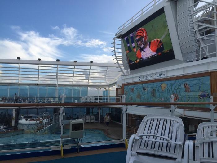 We left Kauai and headed out for another five days at sea, this time headed for Ensenada, Mexico. We went to more trivia and more shows. We ate more. We played Scattergories in the library. I watched a lot of episodes of The Love Boat in our cabin. We did not get off the boat in Ensenada — it didn’t seem worth the hassle at that point. I watched the OU and OSU games on deck 15 on a 100′ outdoor television screen, near the pool. Susan and I spent some time in the casino, and sitting outside on our deck.