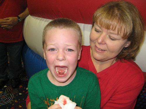 And then, Mason lost a tooth. No one saw the actual incident, but apparently he jumped into something face first and knocked his tooth out. It was a loose baby tooth — no dentist trip needed — but once Mason saw the blood he lost it. Mason’s like that. Earlier this week Mason cut his shin on something and by the way he was screaming I honestly thought he’d broken his leg. So of course, the tooth incident combined with blood loss threatened to end the entire party. Mason screamed and cried and put on a production so loud that parents we didn’t even know came to check on him. After a solid ten minutes, I was able to convince Mason it was no longer bleeding. At that point he wiped his tears, put on a smile, and went back to bounce land